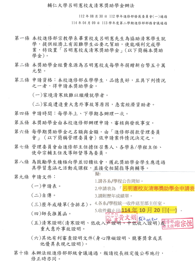 114-1呂明憲校友清寒獎助學金申請(本學程收件至10/19 21:00止)