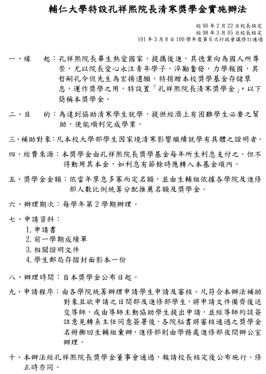 1.申請表為「輔仁大學校內各項獎助學金申請表」